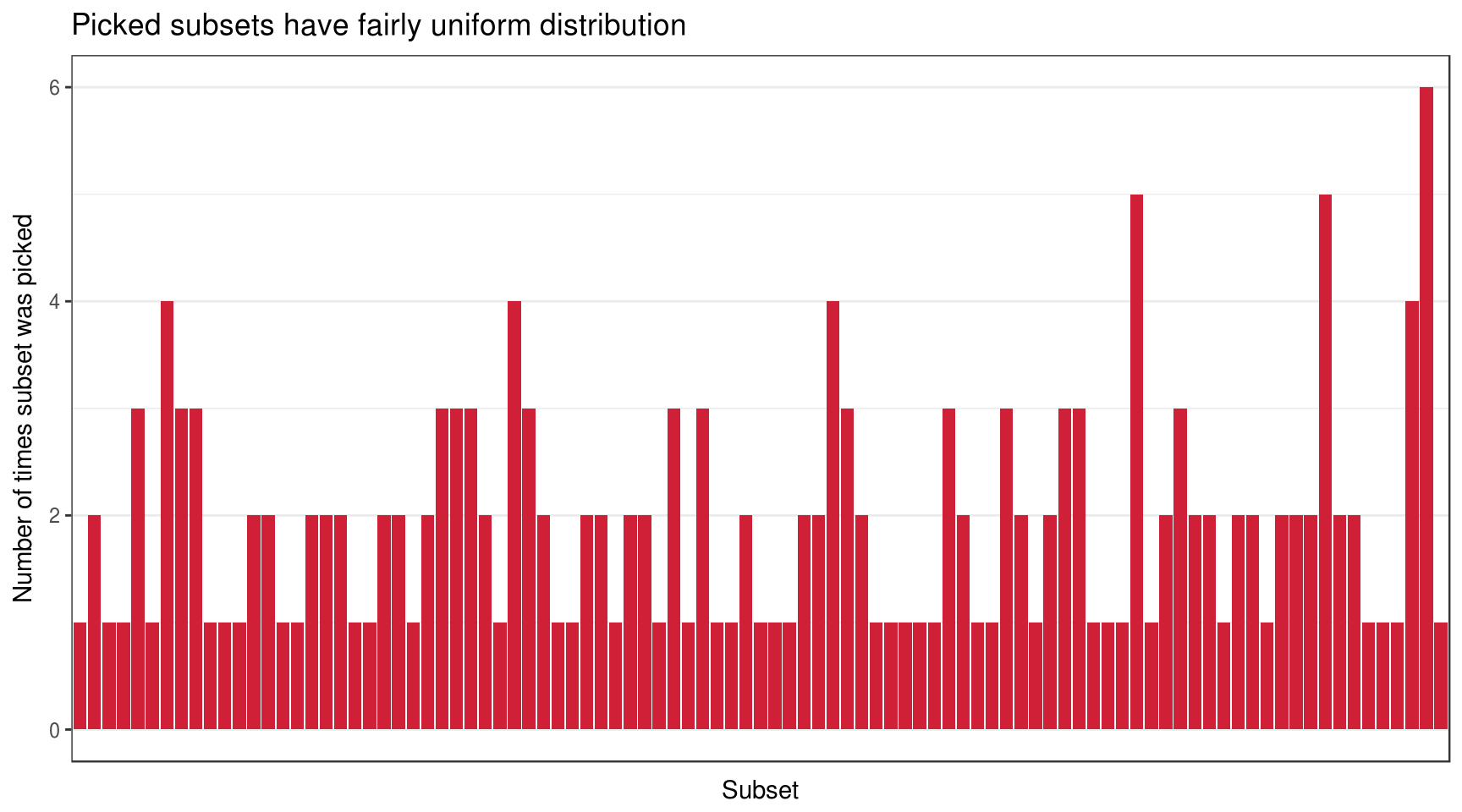 title = "Picked subsets have fairly uniform distribution"