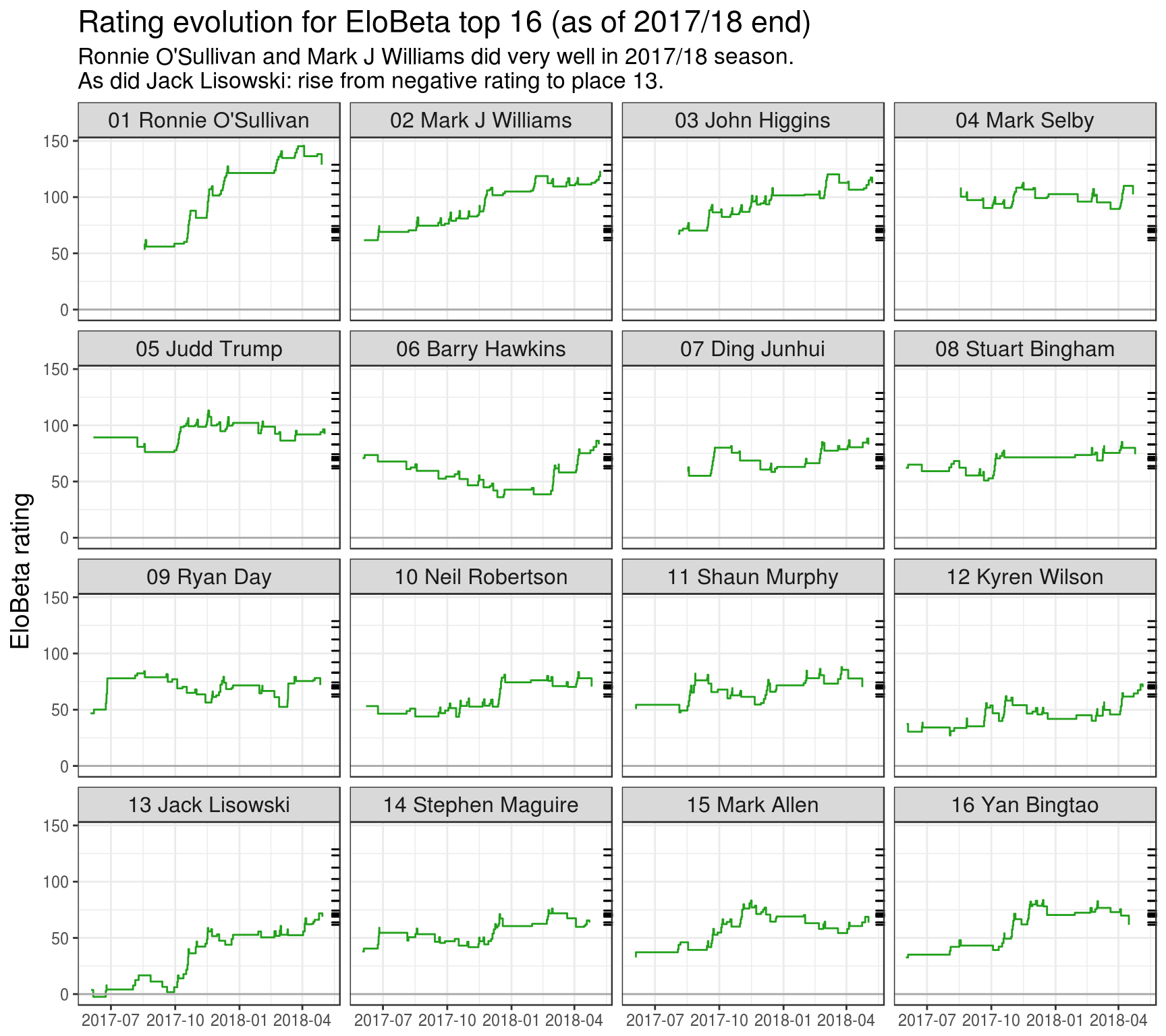 - Most “underrated” players from EloBeta top 16 according to official ranking (as of end of 2017/18 season) are Jack Lisowski, Ryan Day and Yan Bingtao.